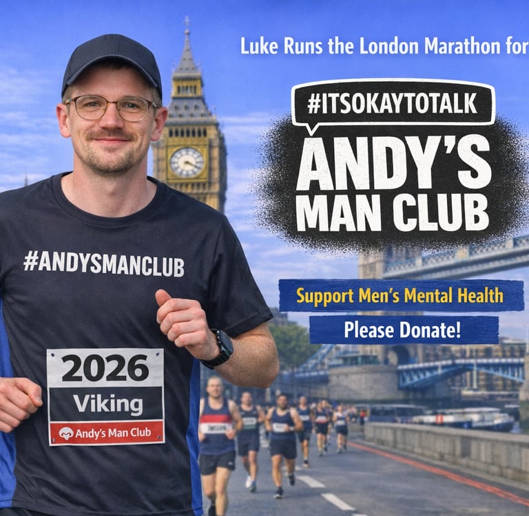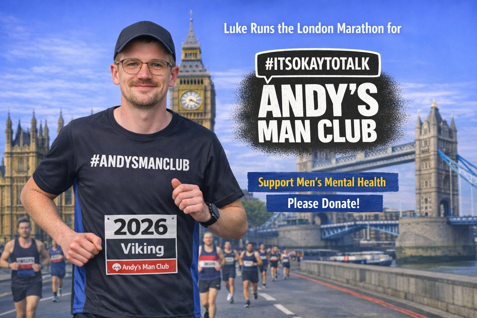 This year, Luke Vincent is taking on the London Marathon in support of Andy’s Man Club, a suicide prevention charity providing free to attend, peer to peer support groups for men across the UK and online.